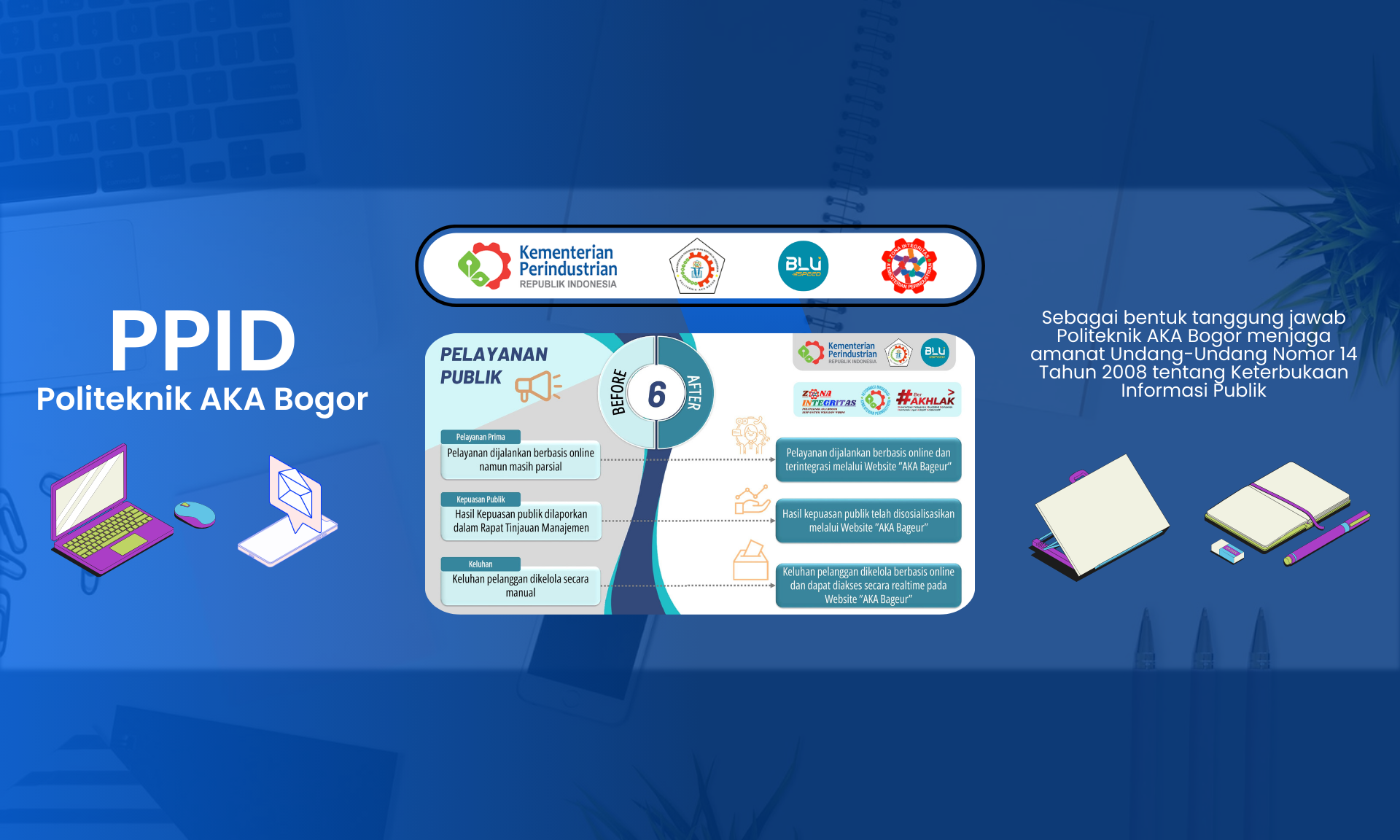 Pejabat Pengelola Informasi dan Dokumentasi (PPID) Politeknik AKA Bogor ditunjuk untuk menjamin hak masyarakat dan industri atas informasi publik sesuai Undang-Undang Nomor 14 Tahun 2008 tentang Keterbukaan Informasi Publik. PPID ini diangkat oleh Kementerian Perindustrian melalui Politeknik AKA Bogor yang berada di bawah naungan Badan Pengembangan Sumber Daya Manusia Industri (BPSDMI). Dengan implementasi sistem pelayanan informasi yang cepat, mudah, dan wajar, PPID menjadi gerbang resmi untuk akses data dan dokumen kampus.