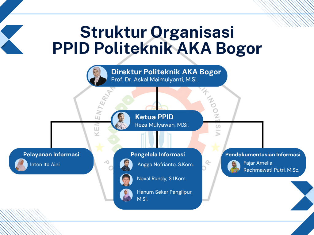Pejabat Pengelola Informasi dan Dokumentasi (PPID) Politeknik AKA Bogor ditunjuk untuk menjamin hak masyarakat dan industri atas informasi publik sesuai Undang-Undang Nomor 14 Tahun 2008 tentang Keterbukaan Informasi Publik. PPID ini diangkat oleh Kementerian Perindustrian melalui Politeknik AKA Bogor yang berada di bawah naungan Badan Pengembangan Sumber Daya Manusia Industri (BPSDMI). Dengan implementasi sistem pelayanan informasi yang cepat, mudah, dan wajar, PPID menjadi gerbang resmi untuk akses data dan dokumen kampus.